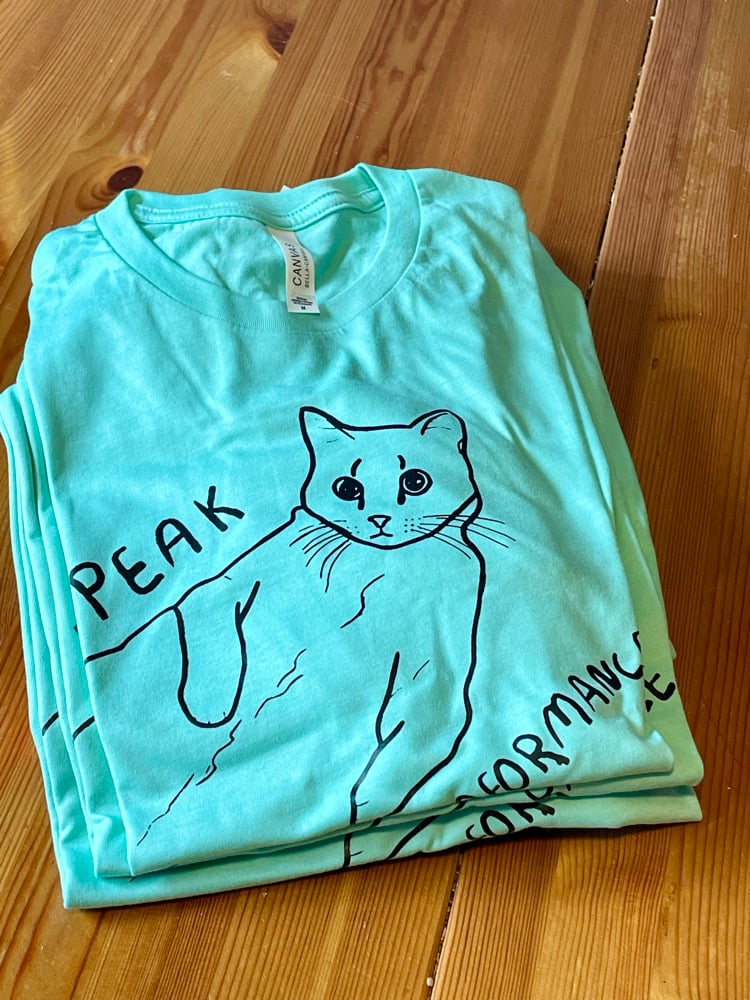 Inspired by my cat Nadia who passed in 2023. The upgraded Peak Purrformace shirt is soft and comfortable and comes in a range of sizes.
